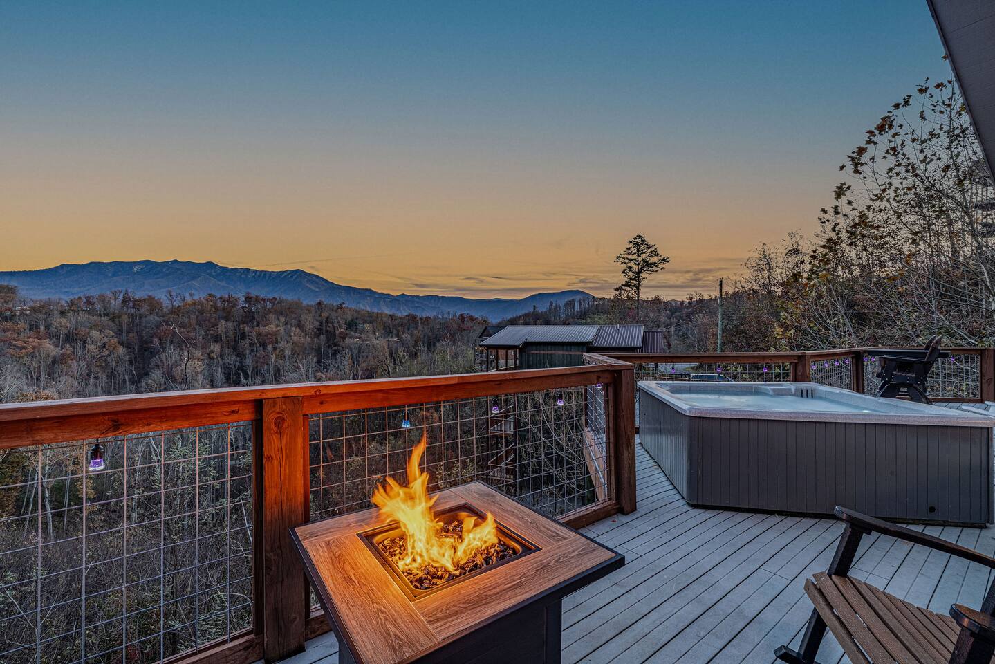 Unwind near Gatlinburg with hot tubs, fire pits, and more amenities.